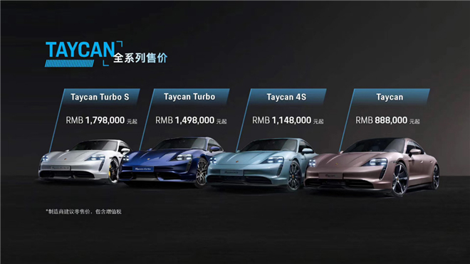 凤凰网汽车·看懂电动车 2020上半年的,,最令特斯拉Model S感到焦躁的事,以及最令保时捷Taycan老车主感到欣慰的事还是发生了。保时捷刚刚发布了全新Taycan,价格直接下探到特斯拉的敏感区间,好在原有车款没有降价。新的车型你可以视为是Taycan车系的第四款产品(部分配置有改变),也可以武断将其定义为Taycan的基础版,后驱单电机,标配续航414km,广告色为冰莓粉,官方指导价88.80万元起。什么?你居然说你的心并不激动,你的手也没有颤抖?那您再看看这辆更唯美的保时捷Taycan Turbo。
