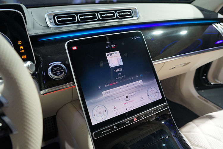 相比于造型设计,全新一代奔驰S内饰方面的改变要更具意义,你可以看到之前贯穿式的中控屏幕由双大屏所取代,置于,的12.8英寸垂瀑式OLED显示屏可以支持触摸操作,并且性能强劲。基于此,车载娱乐系统也可以使用中国的视频APP。相应的,传统物理按键则减少了27个,而仪表屏幕则配备了裸眼3D技术,这能带来更丰富的视觉观感和更直观的信息展示形式。同时,后排乘员也可通过显示屏以及车载平板与前排互动。在全新一代S级的车内,屏幕数量可达到5块。此外新车在传统的密码识别用户基础上还增加了声音、面部和指纹的生物识别技术。