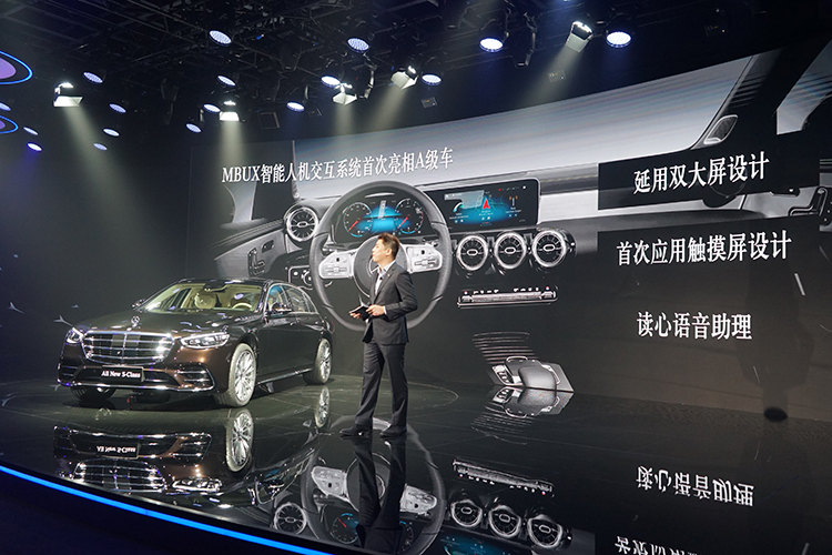 本次发布会,北京是奔驰在德国斯图加特之外的第二会场。当然,这与中国市场占有奔驰S级全球销量40%的关系密不可分。同时,奔驰也注意到:更多伴随着互联网成长起来的中国年轻新贵们对于豪华大型车是有着不同于传统理解的。因此在全新一代奔驰S的造型设计上,你能看到前卫创新与延续传统几乎站到了同等的、甚至更高的位置。这些可以在标志性进气格栅样式、灯组造型等处的改变上有所感受。另外,全新一代奔驰S的轴距也要比前代增加51mm,达到3216mm。这意味着更宽敞的后排乘坐空间。发布会现场还着重对全新一代奔驰S的互联科技和安全方面进行了介绍。