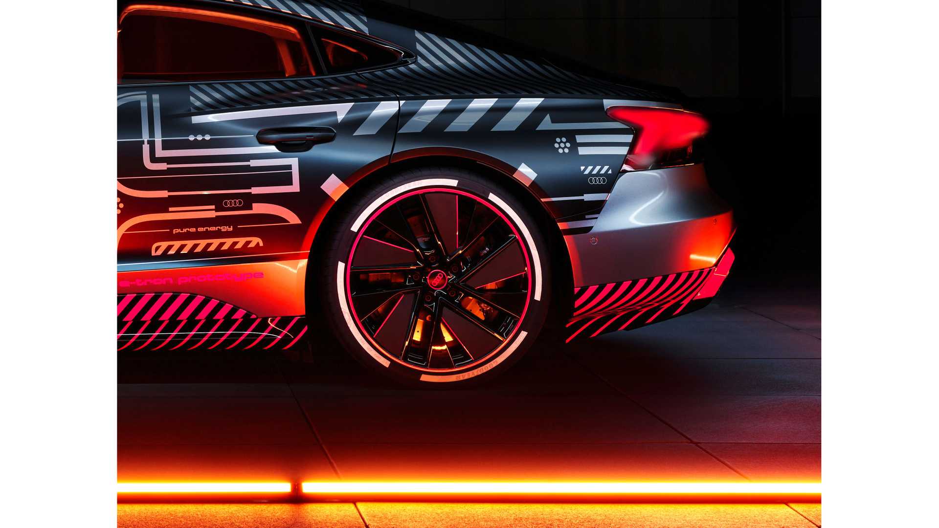 在车身侧面,新车则同样采用了e-tron GT标志性的轿跑线条,在沿用奥迪招牌的Sportback车顶线条的基础上,整体车身比奥迪A7更加短小,显得更加运动,尤其是前轮后轮拱出两处腰线显得非常动感。