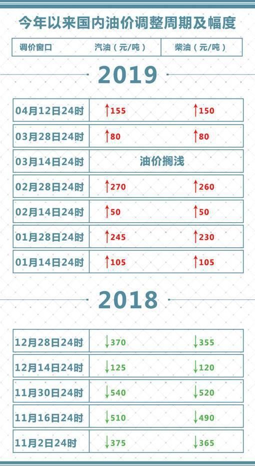 全国平均来看:92号汽油每升上调0.12元;95号汽油每升上调0.13元;0 号柴油每升上调0.13元。
