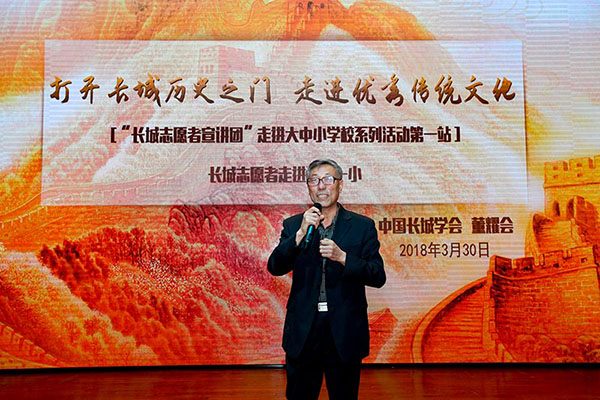 人民网北京3月30日,中国长城学会"长城志愿者宣讲团"走进大中小学系列活动第一站,走进了北京市汇文第一小学。这次活动中,汇文一小党支部邀请了中国长城学会副会长董耀会,讲述他与长城的故事。