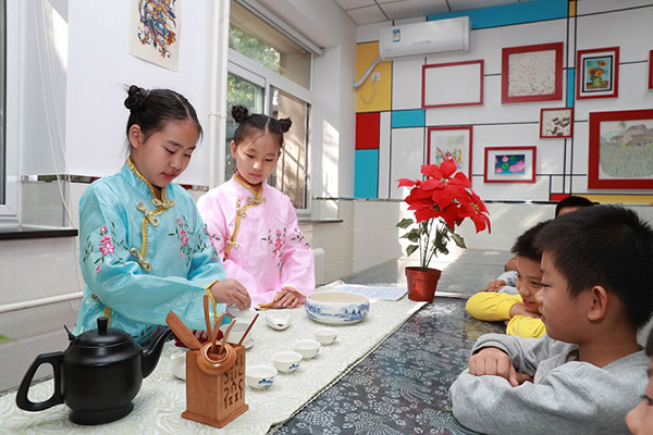 据东城区分司厅小学校长金辉介绍,该校开设茶文化相关课程已有十多年历史,是东城区较早开展此项工作的学校之一。在实践中,学校将茶文化教育与校本课程、考试考核、语数英等基本课程有机融合,让学生在潜移默化中感受茶文化的熏陶。她认为,茶文化教育带给学生,的影响在于礼仪教育:“我国有深厚的文化传统,‘礼’是中华文化的根基,而茶文化中有很多与礼仪相关的内容,比如敬茶等,这对学生的影响是巨大的。”(刘婧婷 梁若昕)