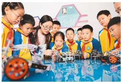 河北省承德市营子区滨河路小学将机器人编程课引入学校,安排专业教师指导学生进行机器人编程、机器人设计等学习,让学生,感受科技的魅力,激发创新意识和科学探索精神。图为11月27日学校教师指导学生练习操作机器人。