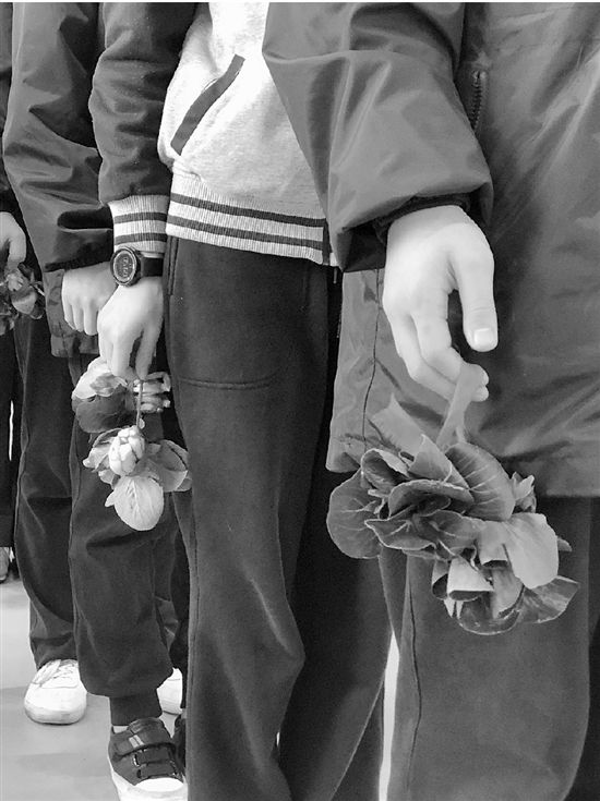 除了正好应季,学校送给学生青菜,还有另一层用意。“青菜的‘青’,还可以寓意为‘青青茁壮’。”吕老师介绍道,“在这种期许下,我们希望学生也可以‘青青茁壮,亲亲孝贤’。好玩有趣的同时,也希望榜样的力量能影响身边的同伴,从而越来越好。”