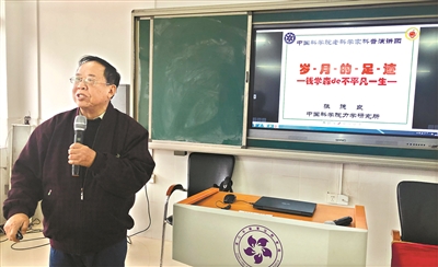 当天,正值“嫦娥4号”成功发射,他向学生们介绍,“嫦娥4号”月球探测器将进入环月轨道,并来到月球的背面实现软着陆。