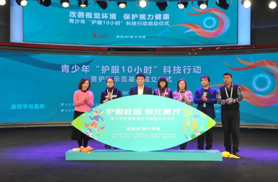 本次活动上,青少年“护眼10小时”科技行动正式宣布启动。同时,作为落实此次行动的第一步,海信4K激光电视将进驻北京广渠门中学、清华附小、大地幼儿园等十所校园,建立“青少年护眼示范基地”。