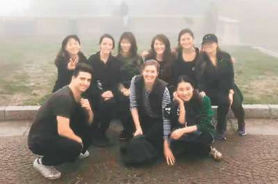 在意大利博洛尼亚,徐霖(前排右一)与外国朋友们一起登山。在学习之外,徐霖参加了丰富多彩的户外活动。