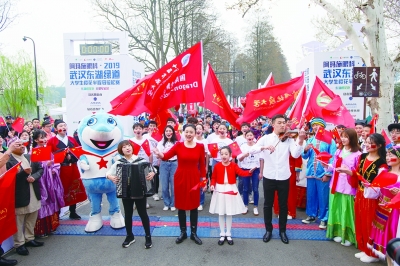 “我和我的祖国,一刻也不能分割……”24日清晨7时,在比赛现场,由华侨城小学的小学生、56个少数民族代表、武汉旅发投集团东湖绿道公司运营团队、中国地质大学(武汉)艺术与传媒学院大学生和中国地质大学(武汉)丝绸之路学院的留学生,组成的上百人快闪合唱燃爆全场。