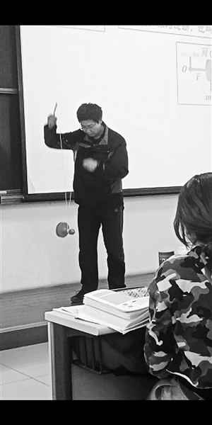 北理工副教授石宏霆在课上用抖空竹、打乒乓球的方式讲解物理学原理