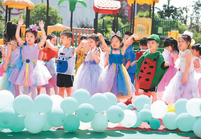 6月3日,为迎接世界环境日,安徽省合肥市常青街道竹西社区联合紫竹苑幼儿园开展“”主题教育活动,通过开展环保主题绘画、环保时装秀等活动,帮助孩子们从小树立节约资源、爱护环境的意识。图为紫竹苑幼儿园的孩子们在进行环保时装秀。