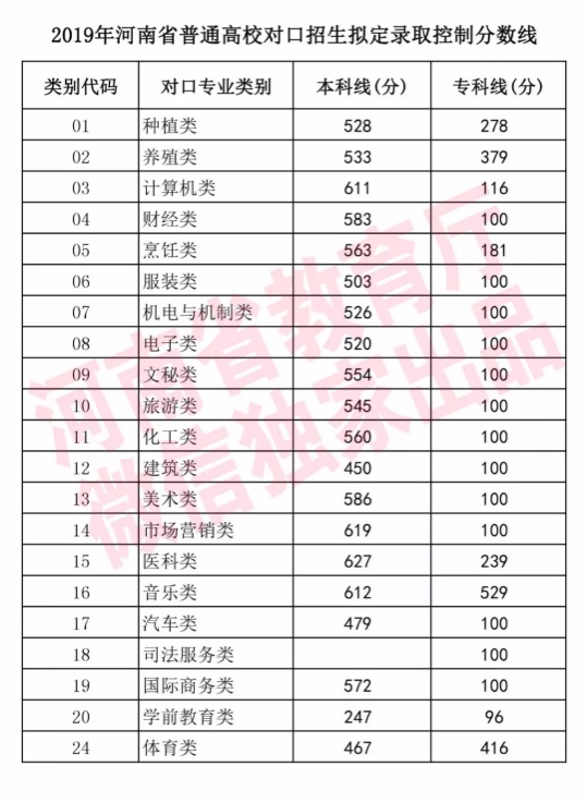 人民网北京6月25日电 据河南省教育厅官方微信消息,河南省2019年普通高校招生考试各类别录取控制分数线如下:
