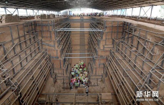 8月1日,洛阳市“我是小小考古家”夏令营的营员们在曹魏大墓考古工地参观。