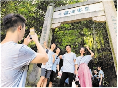 图为参加研学的港澳台学子走在当年徐霞客游金华山的古道上。吴俊鹏/摄