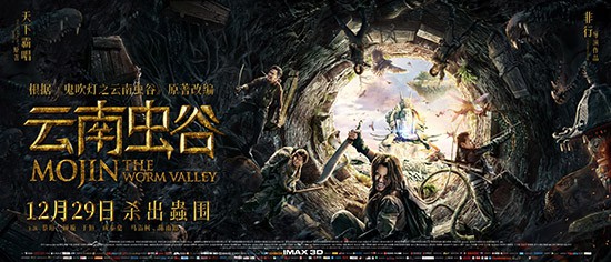杀出虫围版预告片则气势浩大地展现了鬼吹灯中的奇幻世界,摸金小队穿过地下暗河打开八宝连环扣进入遮龙山,寻找传说中的雮尘珠打破诅咒。“触动雮尘珠的那刻,就是万劫不复的开始”,陈瞎子的这句话预示着摸金小队的旅程注定杀机四伏。一路上他们遭遇水彘蜂、不死虫、刀齿蝰鱼等各种异兽,不可预测的各种危险扑面而来,九死一生。但“这诅咒并不是警告,而是让我们恐惧”、“无论如何,我们必须找到雮尘珠”又展现出摸金小队成员们不服天命、勇敢抗争,誓要打破诅咒的心境,究竟结局是寻回宝珠还是坠入地狱,一切只可静待上映之时揭开。