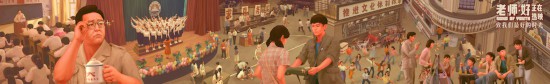 此次发布的手绘海报以“长卷”的形式进行呈现,背景上选择了将1985年的时代特征融入其中。前景则是电影《老师·好》中的经典场景。