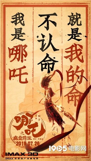 1905电影网讯 近日,国漫《哪吒之魔童降世》发布“不认命”海报及观众提前观影记录。与此前海报不同,此次海报以趣味自嘲的方式,向观众传递出“不认命”的哪吒态度。首轮千场点映后,最燃哪吒“圈粉”无数,登上众多平台热搜,获得全年龄段观众一致高度认可。从普通观众到百万量级大V纷纷给予影片“暴风”安利“超出预期十分惊喜”等五星好评在猫眼、豆瓣等平台不断刷屏,甚至不少观众表示已经三刷影片。应观众极高呼声,影片将于本周7月17日-19日追加千场全国点映,7月26日正式全国上映。