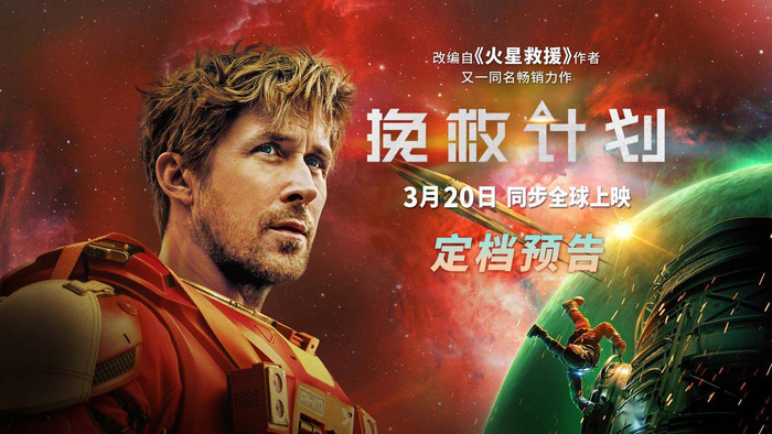 瑞恩 · 高斯林、桑德拉 · 惠勒主演的科幻惊悚片《挽救计划》中国内地定档 3 月 20 日,同步北美。
