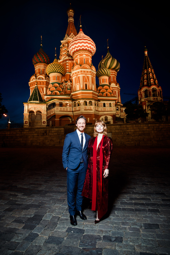 日前,《X战警:黑凤凰》的全球宣传已陆续开启,各位主创也踏上行程,与世界各地关心X战警命运的热情粉丝们一起,共同期待这场谢幕大战的到来。近日,X教授的饰演者詹姆斯·麦卡沃伊与新加入X战警宇宙的杰西卡·查斯坦搭配成“高颜值”二人组,携手《X战警:黑凤凰》导演兼编剧西蒙·金伯格、制片人哈奇·帕克一同现身俄罗斯莫斯科参加当地的宣传活动,几位主创来到莫斯科红场南部的圣瓦西里大教堂前合影留念,吸睛指数满分。早先有过多次合作的詹姆斯·麦卡沃伊与杰西卡·查斯坦这次在X战警宇宙中相遇,更是让人期待不已。