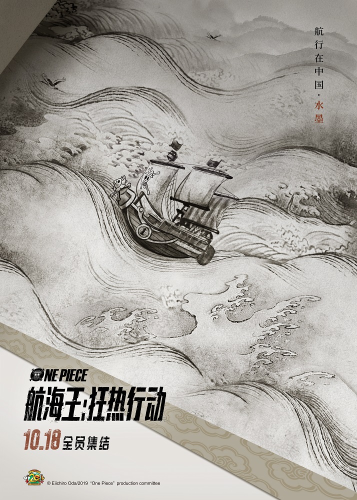 动画播出20周年纪念之作《航海王:狂热行动》由《航海王》漫画原作者尾田荣一郎监制,这也是“航海王系列”第14部动画电影。影片将于10月18日全国上映,官方今日同时发布4张“航行在中国”版定制海报,海报分别将草帽一伙的海上征途融合水墨画,青花瓷,刺绣及皮影4种传统元素,中国风韵味展露无遗。