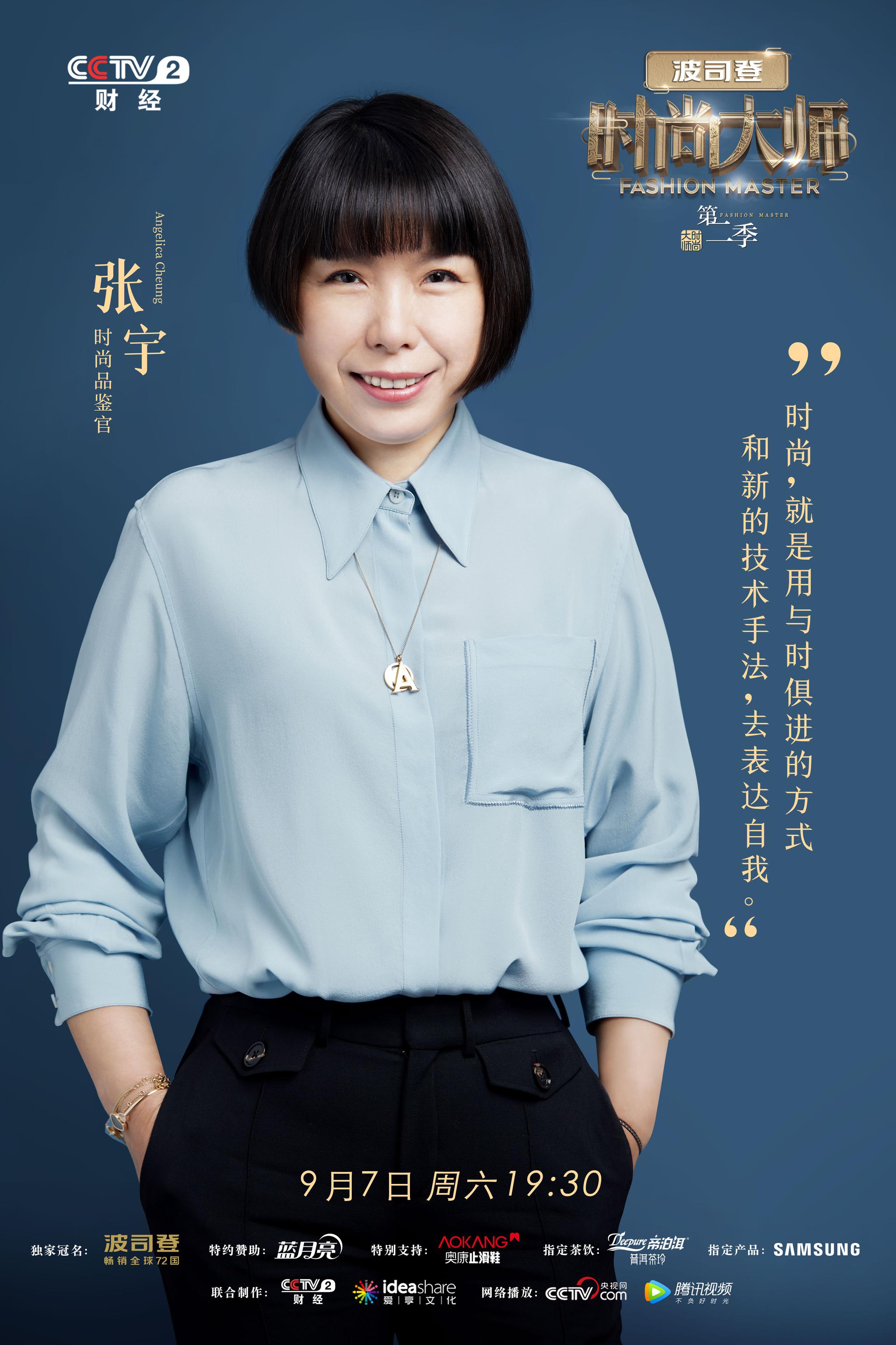 由,广播电视总台,电视台财经频道携手爱享文化联合制作的全球首档时尚文化创享节目《时尚大师》第二季将于9月7日在央视财经频道正式播出,腾讯视频全网,播出。《VOGUE 服饰与美容》编辑总监张宇女士作为时尚品鉴官再度加盟,周仰杰博士(Professor Jimmy Choo OBE)、萧志美(Anna Sui)、王陈彩霞(夏姿陈)、郭培、蒋琼耳、马可等十多位国际知名华人设计师参与节目,他们以不同的中国色彩为创作灵感,运用十余种非遗技艺,呈现一场场跨界潮流大秀,让中国色彩重新焕发新时代的生命力。