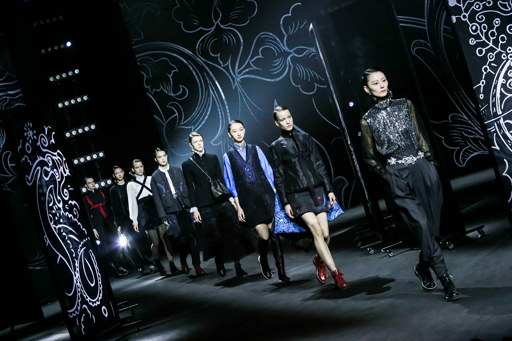 周仰杰博士前往故宫汲取大秀灵感,从红墙绿瓦后发现了属于历史的厚重的“白”;王陈彩霞致力于保存和发扬非遗传统苗绣,从2017年起就每年邀请12位苗族绣娘前往上海工作室学习工作,“黑色”主题时尚大秀更是取材于苗族传统图腾和背儿带;