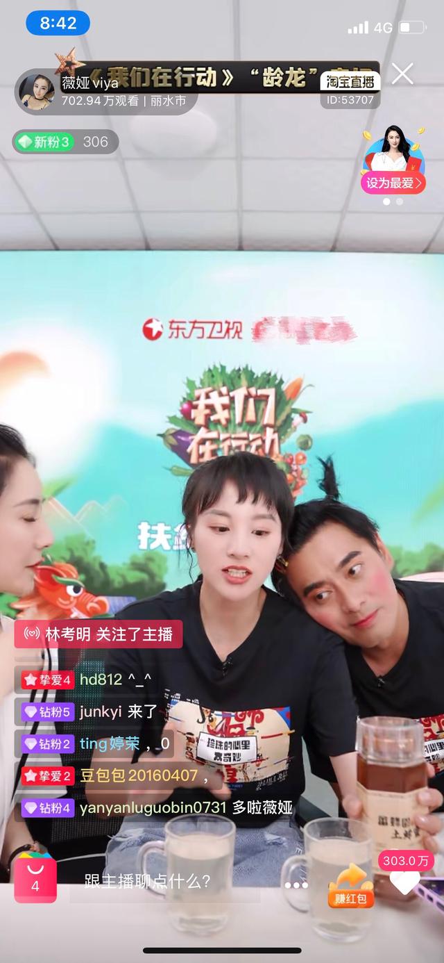 《我们在行动》喜提新老朋友们!第五季节目正在火热录制中,第二站来到了全国,的畲族自治县——浙江省丽水市景宁县。新朋友黄晓明首度加盟,实地助农超"接地气"。老朋友薇娅二度公益助农直播,携手节目总制片人主持人陈蓉,"龄龙"夫妇陈龙、章龄之在线营业,为景宁的好山、好水、好物助力。手工山货,都是秒空,薇娅直播间、"番茄台"直播间累计总观看次数超2107万,最终本站扶贫助农行动总金额高达8023万!"龄龙"夫妇的情侣舞蹈也是气氛火热!章龄之为陈龙打造的"哪吒妆发",是不是也太可爱了?