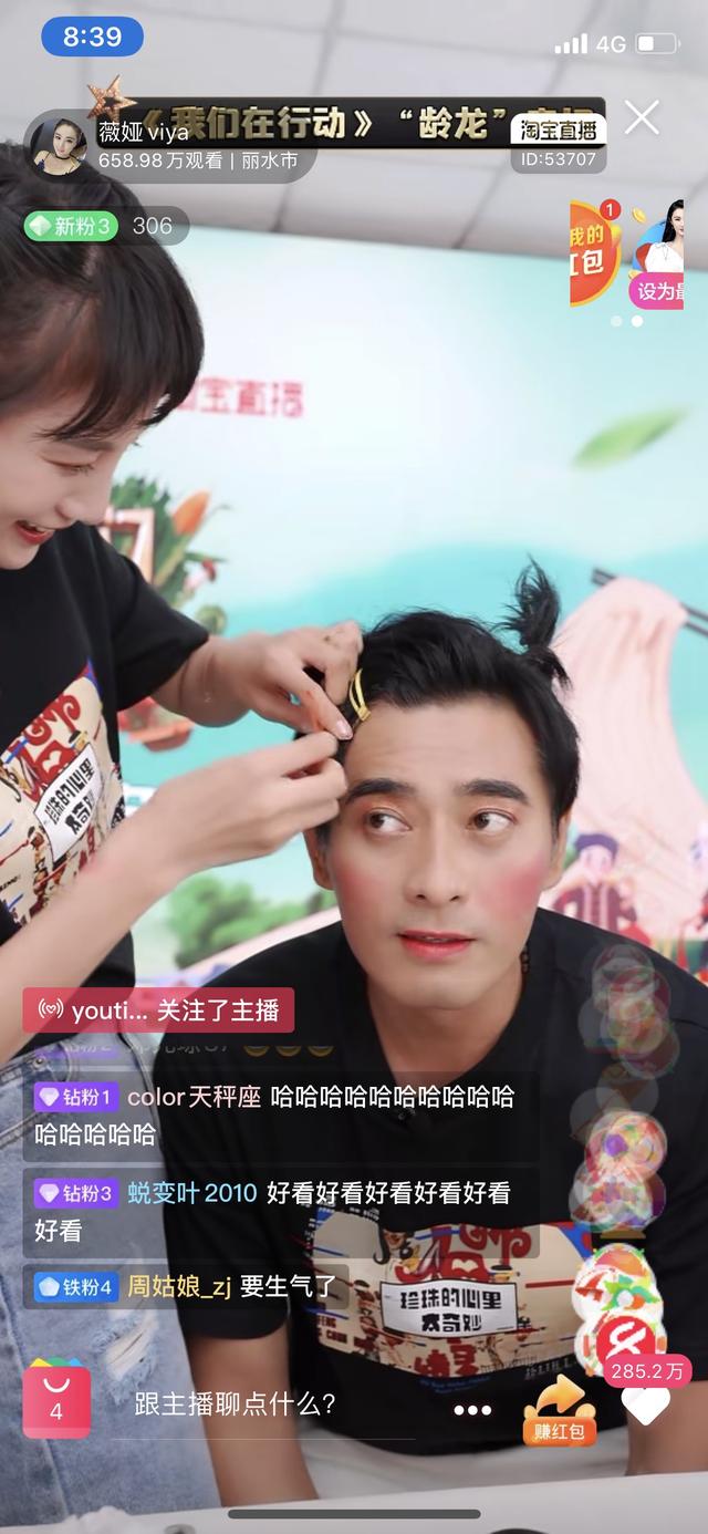 昨晚,曾在第四季节目中助力青海省互助土族自治县青绣的薇娅,第五季节目再度加盟为助农发声。做客薇娅直播间的陈龙、章龄之夫妇,也携手为屏幕前的网友们撒下大把的"狗粮"。一出场,章龄之就许下"产品秒空,就给老公化妆"的诺言。老婆实力带货,产品一件件,,陈龙也只能为爱献身:"猛男"涂腮红,化出了佟掌柜的感觉;还要配上两个小揪揪,"哪吒头"华丽登场。章龄之也笑着感叹:"结婚八年了,终于等到(给老公化妆)这,了!"在章龄之的指导下,陈龙也带着可爱风的"哪吒妆发",跳起俏皮的卖萌舞,收获粉丝点赞连连。努力营业过后,陈龙还在一旁小小声辩解:"我可是'蒙大将军'啊,才不是'蒙贵妃'!"