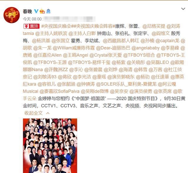 大家对于这次的央视国庆晚会阵容怎么看呢?你最期待哪位明星艺人的表演?大家可以在评论留言讨论哦!