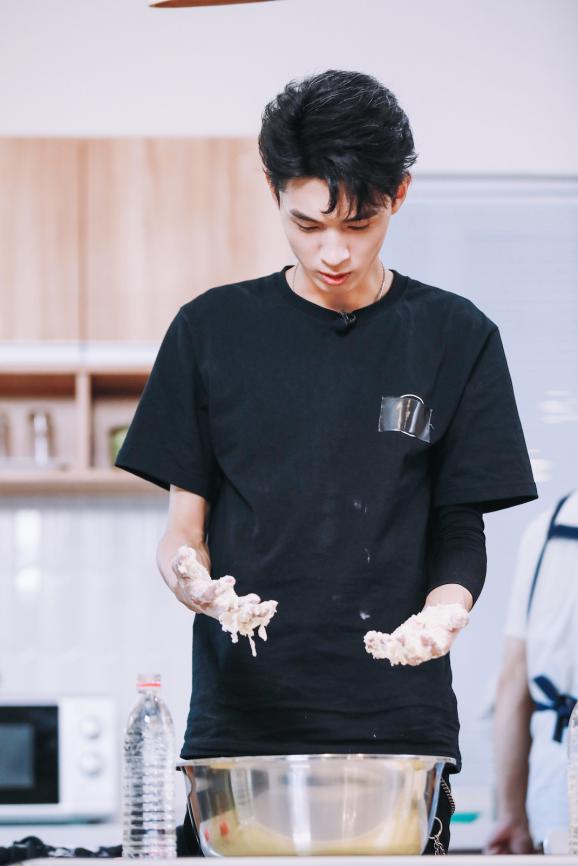 镜头前的尹正坐在桌前,一本正经地夸夸奇谈,不仅表达出自己对美食的看法,还感慨作为一名"食者"对食物的敬畏。然而,当他真正站在灶台前,面对食材时却发现手足无措,顾此失彼,场边一度混乱至极。