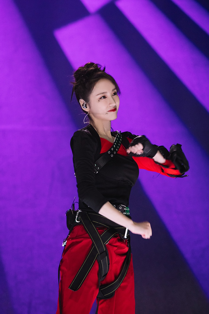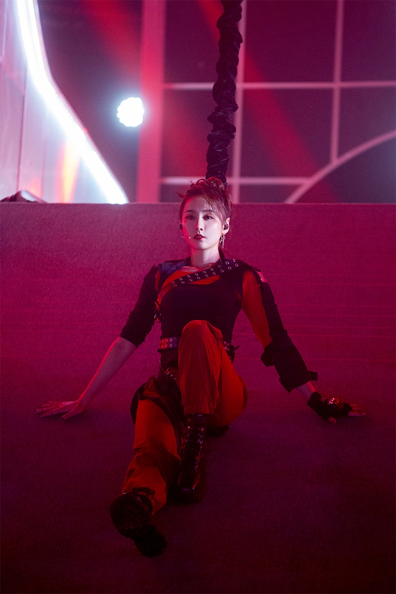 在上周的二公舞台《无乐不作》中,吕一一身红黑搭配的工装造型出场亮相瞬间点燃舞台气氛,在一段姐姐们集体“吊威亚”斜坡跑酷的惊喜舞台设计后,吕一更是一改往日风格,挑战一段重庆方言版rap,一句“现场的每一个,都为我尖叫!”高能引燃全场,魅力四射,网友们纷纷直呼“姐姐台风太燃太炸了”、“看完舞台都被感染到,绝了!”等。