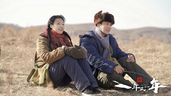 在《新一年又一年》的故事中,青梅竹马的陈焕(于晓光 饰)与林平平(郎月婷 饰)曾一同前往陕北插队,他们在这里辛勤劳作,相互扶持,辛苦并快乐着。而插队生活还未结束时,知青们就收到了恢复高考的通知,陈焕和林平平一心求学,回京后积极备考,开始了自己的崭新人生。在此次曝光的陕北剧照中可以看出,于晓光、郎月婷二人穿着厚实的棉衣,斜挎着有些沧桑的帆布包站在黄土高原上。虽然放眼望去一片荒凉,但这对青梅竹马却有说有笑,享受着自己的插队生活。
