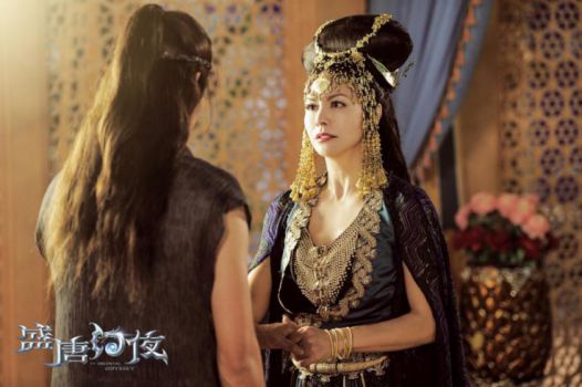 由浙江华策影视、霍尔果斯华策影视、北京自由酷鲸影业、霍尔果斯橄榄影业、深圳市腾讯计算机系统联合出品,周晓鹏执导,缪娟编剧,吴倩、郑业成、田丽等联袂主演的古装探案魔幻剧《盛唐幻夜》已于近日会员收官。该剧讲述了盛唐之下,户部侍郎千金叶远安与家奴穆乐、捕头赵澜之、国师高徒明慧郡主在一件件扑朔迷离、错综复杂的悬疑案件中抽丝剥茧、寻踪觅源屡破奇案的故事。实力派演员田丽在剧中饰演了,冷艳的娑罗国王后,颇具异域风情,造型格外吸睛。