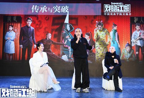 本周三,邹四维、裘继戎重回母校中国戏曲学院,作为同校师兄弟,又是国粹弘扬先锋创新者,重回母校交流畅谈《戏隐江湖》背后的故事,全程高能默契十足,此外,剧中斜穿红色蟒袍,头戴绒球盔头,足蹬虎头靴的“兔爷”也特别巡游登场,京韵十足。
