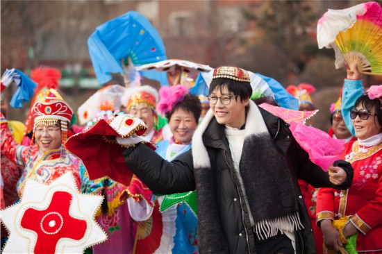 和刘大姐一样,秧歌队的每一位队员脸上都洋溢着快乐幸福的笑脸,他们虽然都年过半百,但却都精气神十足,散发着朝气蓬勃的活力。受到热情的氛围感染,来自台北的小冰也学起了东北话,和刘大姐合作完成了作品的拍摄。