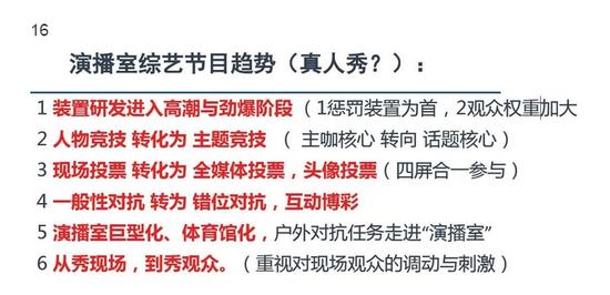 “广电,”特约冷淞博士分享其PPT,以帮助未能参会的节目主创人员了解今后真人秀节目的创作方向。