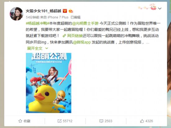 此次杨超越和《光明勇士》深度合作,除了拍摄宣传照、演唱主题曲、广告短片拍摄等合作方式外,还在游戏中植入了杨超越真人形象小月芽以及冲鸭称号、专属月牙坐骑、同款小黄鸭包等深度合作内容。据悉,在游戏公测期间,还将举办一系列代言人线下活动。届时,杨超越将与粉丝将在线下进行哪些互动,一起期待一下吧。