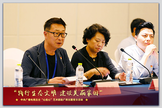 离开湿地公园后,考察团一行在南宁市那考河海绵城市科普馆举行了学习报告座谈会。座谈会上,,广播电视总台央视分党组成员、副总编辑朱彤强调,艺术贵在真实。他颇为动容地说:“文艺工作者的真情实感来自何方?来自于接地气。地气从哪来?把文艺工作者带到生活中去。带他们看看在中国的大舞台上发生的巨大变化,每到一处,听听那些感天动地的故事。我们把生活总结起来,成为一种形象、一种情怀,来表达时代精神、时代人物。艺术创作的途径就是深入生活。”