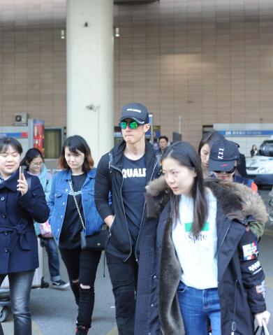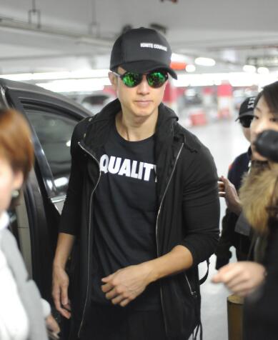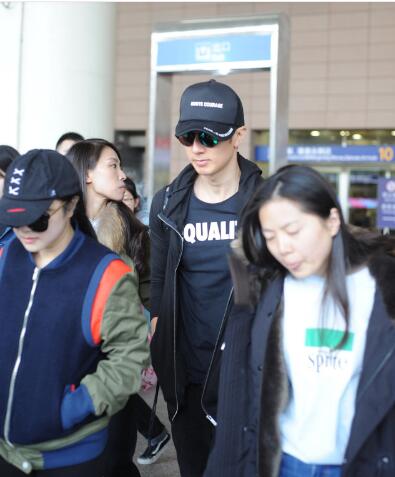 吴尊现身机场引迷妹包围 神情淡定低头前行一脸帅气