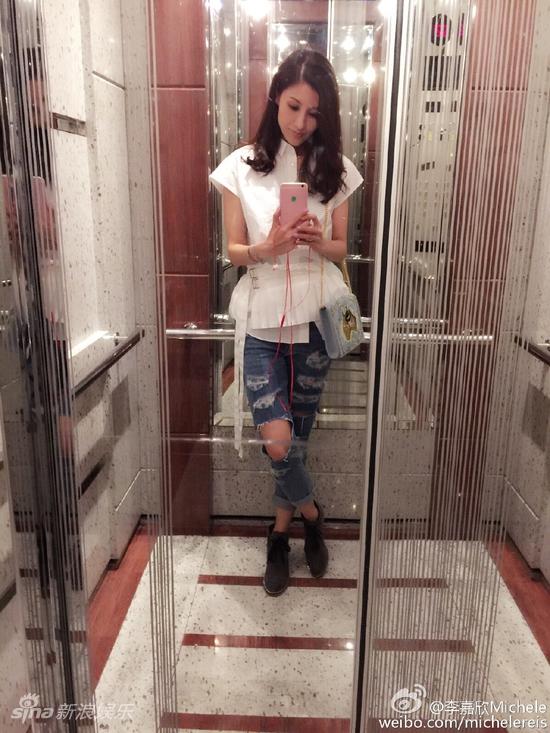 李嘉欣爱美电梯自拍 腰细腿长讨厌高跟鞋