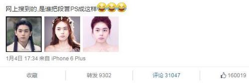 林志颖在微博晒出的照片中,第一张是他本人在新版《天龙八部》中饰演的段誉剧照,第二张则是网友根据第一张剧照ps成韩国女星高雅拉的造型,第三张则被ps成一个梳着丸子头,嘟着小嘴,露出美丽锁骨的少女。