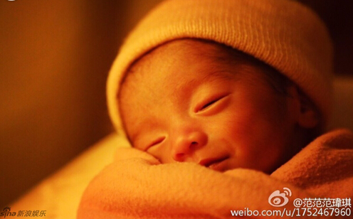 范范范玮琪在微博晒出生19天的宝贝儿子的睡颜。小家伙微微睁着眼睛,歪嘴坏笑的表情甚是可爱,网友纷纷调侃像极了黑人。