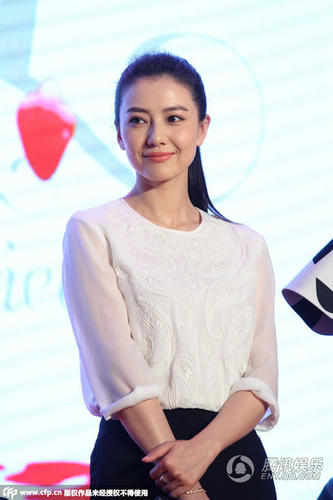 3月08日,北京, 电影《咱们结婚吧》记者会,人妻高圆圆穿黑白配干练装亮相,她大方地向在场媒体承认至今未有孕相,反复强调自己婚姻很幸福却对何时要孩子避而不答,自曝如怀孕则会为孩子回归家庭。