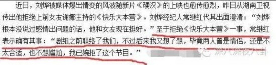 其实自从刘烨跟谢娜分手,刘烨别说上湖南卫视节目,连湖南都很少去!不过去年年底在长沙参加活动时,刘烨说希望有生之年还能上《快本》。之前刘烨也在回复网友留言时说去不了《快本》。