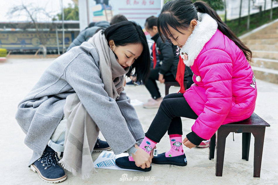周迅致力公益担任爱心大使 蹲地为孩子穿鞋无架子