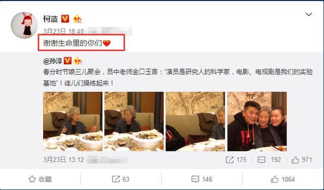 不过,其实他这几天也有活跃的,这不,就在昨天的时候,孙淳发了一条微博,柯蓝还转发评论说:谢谢生命里的你们,这具体是什么情况呢?