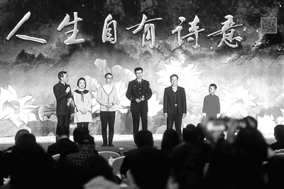 《中国诗词大会》第三季将于3月23日起在,电视台科教频道连续播出10天。本季《中国诗词大会》将延续“人生自有诗意”这个主题,旨在用有趣的题目、紧张的对抗、精彩的解读以及温暖的深情,把古典诗词这一中华文化精华传达给观众。图为点评嘉宾康震(左一)与部分选手出席发布会。