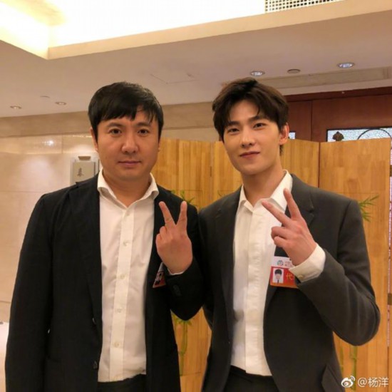 10月11日,杨洋在自己微博晒出与沈腾的合照,并配文称:“与沈代表一起参会!”他还艾特了沈腾。合照中,沈腾和杨洋皆身穿西装,手比V字,杨洋一脸笑容十分帅气,沈腾表情柔和,一脸认真。有网友评论:“传说中的两位军艺校草烩面啦!”沈腾搞笑回复:“难得见师哥一面,开心!”