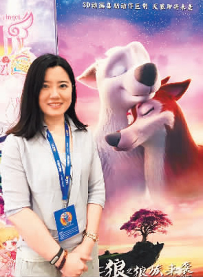 施佳欣说,她想用动画这种形式,把更多动人的中国故事呈现给中外观众。图为2017年,施佳欣携作品《天狼:狼族来袭》参加中国国际动漫节电影推介会。 |