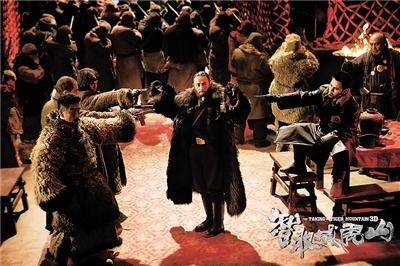 片方博纳影业集团海口办事处负责人告诉记者,为何提档上映他们还不能解释原因,他们只是按照公司的通知精神遵照执行。该负责人还说,12月22日,剧组导演徐克和“杨子荣”扮演者张涵予在广州参加了媒体见面会,两人都回答了各路记者的不少尖锐提问。其中,张涵予还主动爆料称,拍打老虎和打飞机两场戏,分别用了15天,两场戏拍了整整一个月。虽然电影中的桥段是杨子荣打“真老虎”,但在拍摄时却是张涵予爬到树上对着空气、假老虎打,而这样一拍就是15天,和杨子荣打飞机那场戏的拍摄时间一样多,这也是该片一年前开拍现在才上映的原因之一。